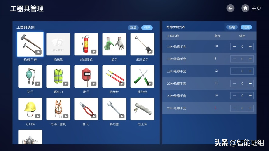 工器具管理可视化,风险防控在线教学,借用、维修、检验记录自动生成;检验检测到期、超期预警。