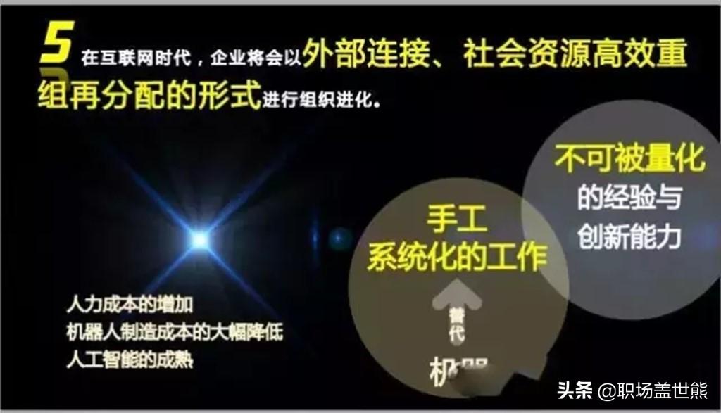 5、互联网时代,企业将会以外部连接,社会资源高效重组再分配的形式进行组织进化