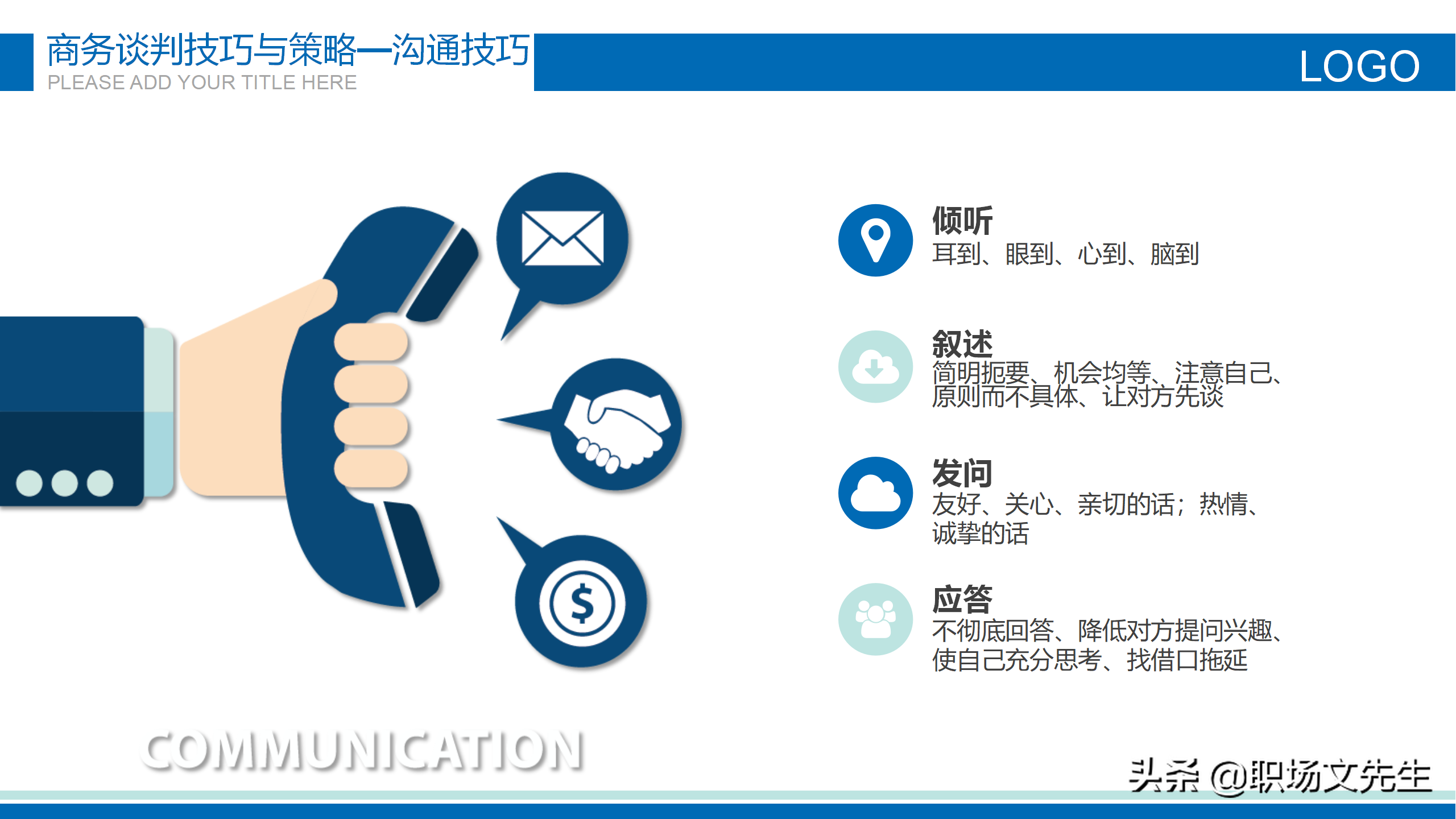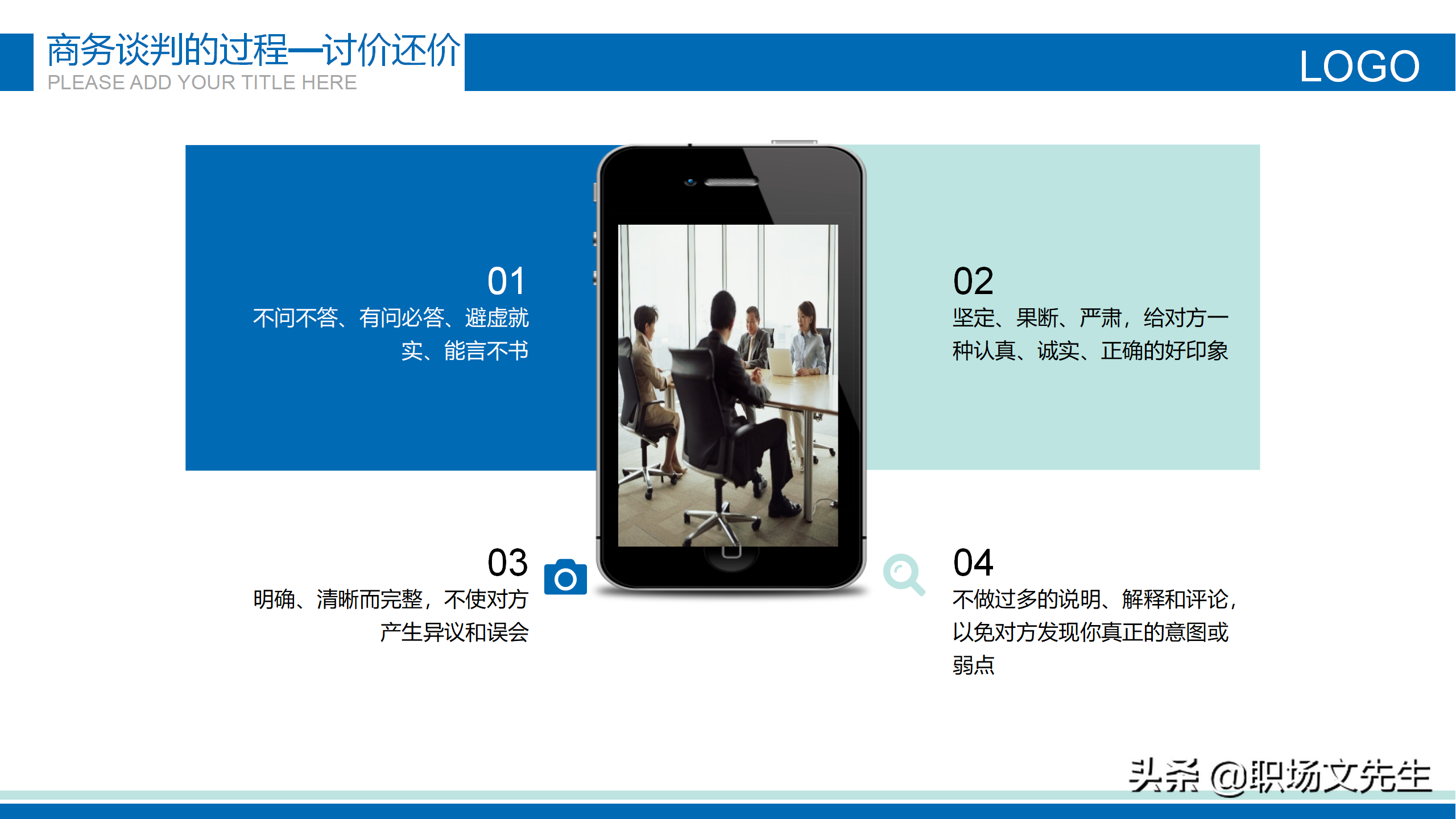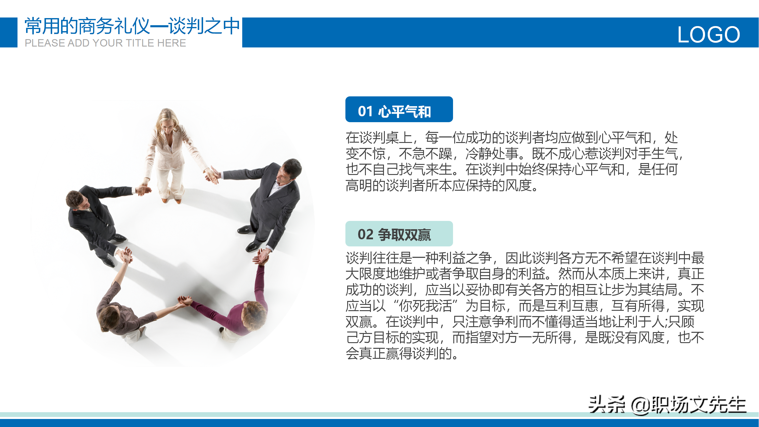 版权声明:我们致力于保护作者版权,注重分享,被刊用文章【商务谈判案例ppt(常用的商务谈判礼仪)】因无法核实真实出处,未能及时与作者取得联系,或有版权异议的,请联系管理员,我们会立即处理! 部分文章是来自自研大数据AI进行生成,内容摘自(百度百科,百度知道,头条百科,中国民法典,刑法,牛津词典,新华词典,汉语词典,国家院校,科普平台)等数据,内容仅供学习参考,不准确地方联系删除处理!;