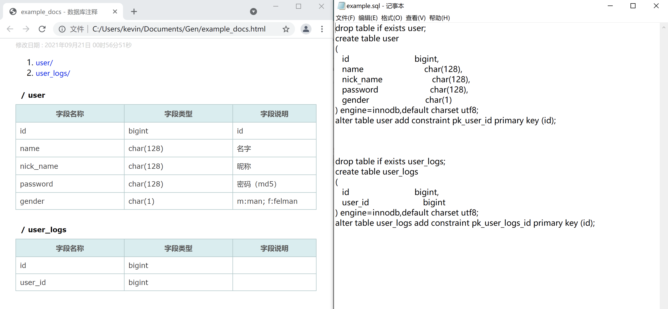 查看脚本中定义的输出目录,我们得到了一份Html doc与SQL脚本:
