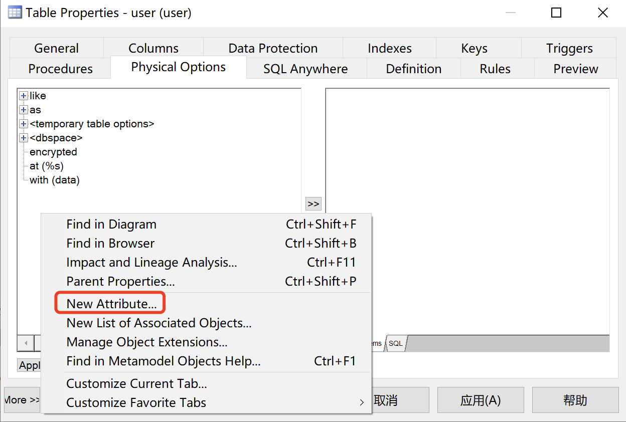 更近一步,有的团队需要设置表的表空间等参数,那么如何在PowerDesigner中扩展呢?我们可以使用PowerDesinger中的扩展属性功能,并在脚本中读取扩展属性做相应的处理: