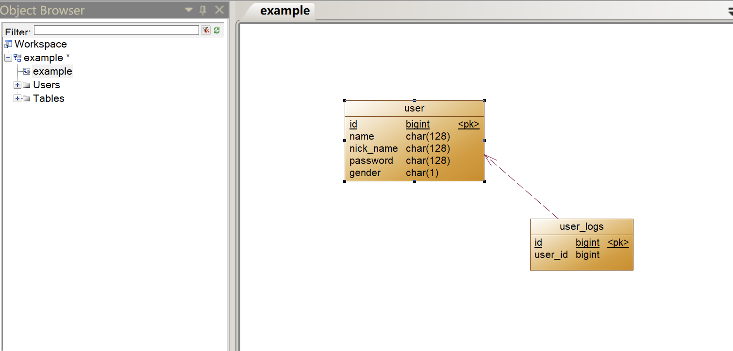 再添加一张user_logs表,并将它们用“Link”关联,现在图长成这样: