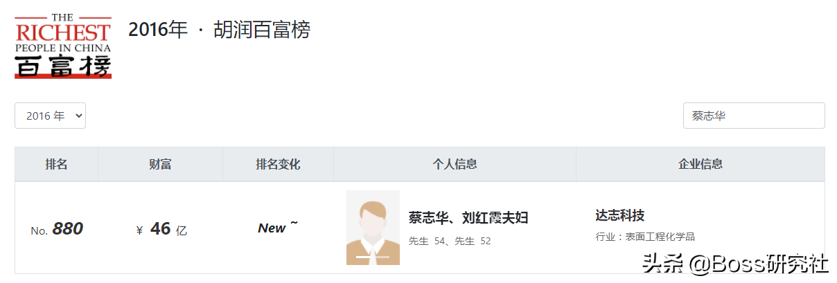 在达志科技上市前,蔡志华和妻子刘红霞共计持有达志科技超过90%的股份,此外,蔡志华的哥哥蔡志斌也持有公司0.97%的股份,在当年的《胡润百富榜》中,蔡志华夫妇被披露的身价,更是高达46亿元人民币。