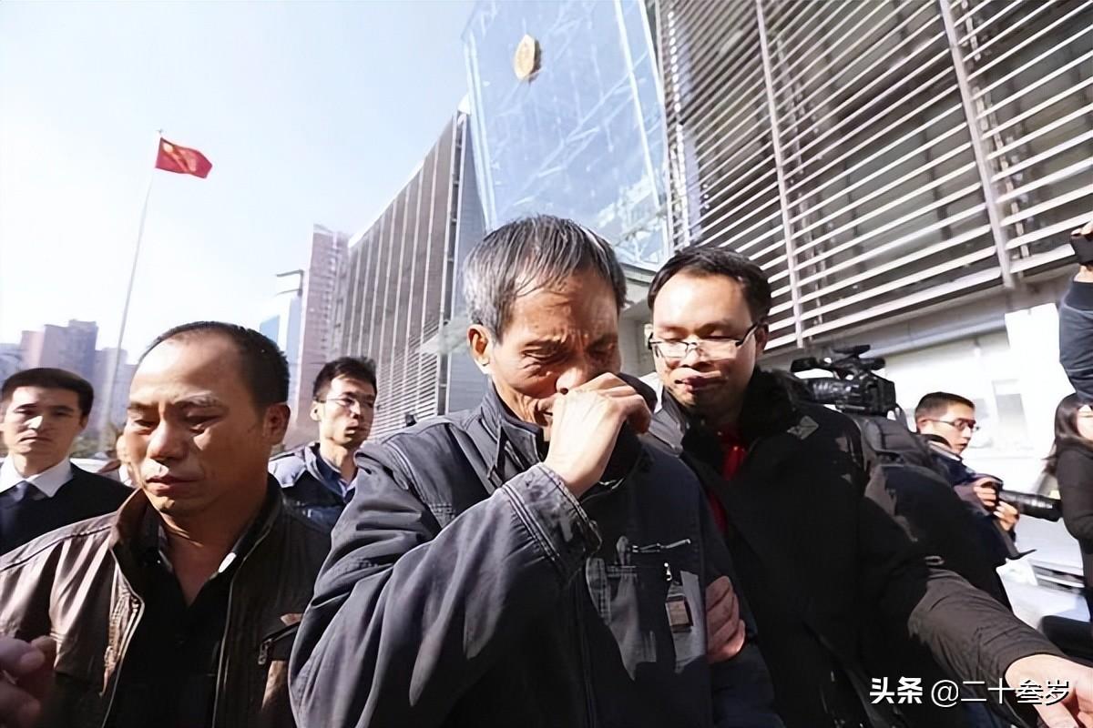 图为林森浩的父亲(中)难过不语