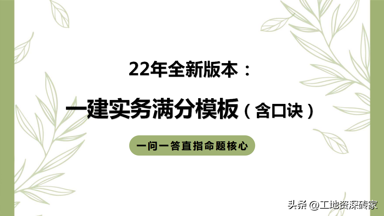 22年一建案例满分模板全新改版,增加了新教材变动点,贴合最新的考试重点。一问一答简单明了,还编有顺口溜辅助理解记忆,简直是开挂式备考,实务不考100+我第一个不服!