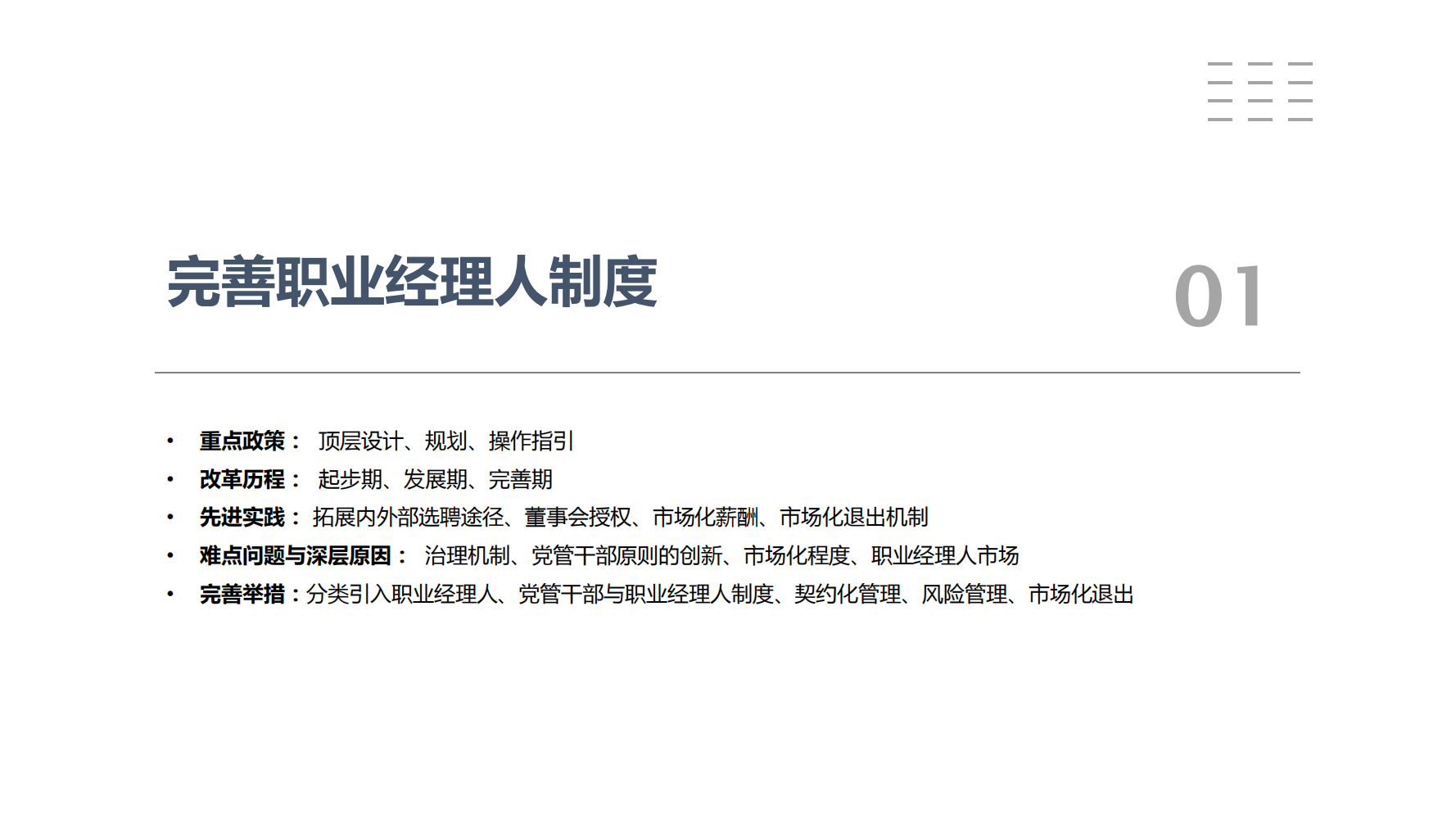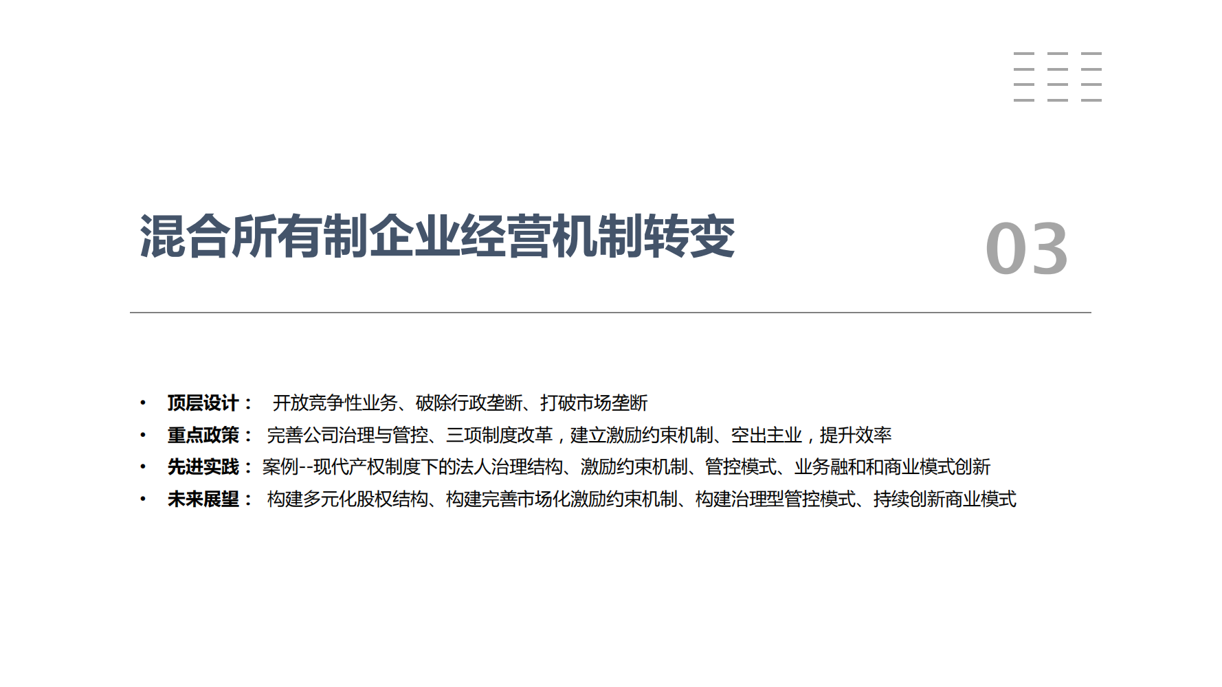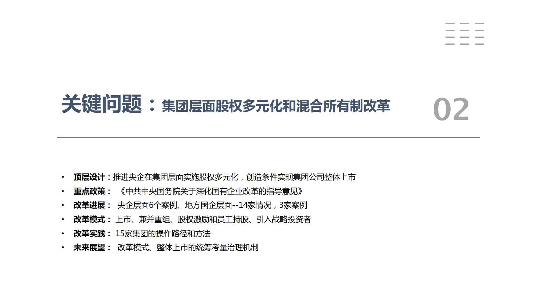 版权声明:我们致力于保护作者版权,注重分享,被刊用文章【市场调研案例(国企改革关键问题分析报告)】因无法核实真实出处,未能及时与作者取得联系,或有版权异议的,请联系管理员,我们会立即处理! 部分文章是来自自研大数据AI进行生成,内容摘自(百度百科,百度知道,头条百科,中国民法典,刑法,牛津词典,新华词典,汉语词典,国家院校,科普平台)等数据,内容仅供学习参考,不准确地方联系删除处理!;