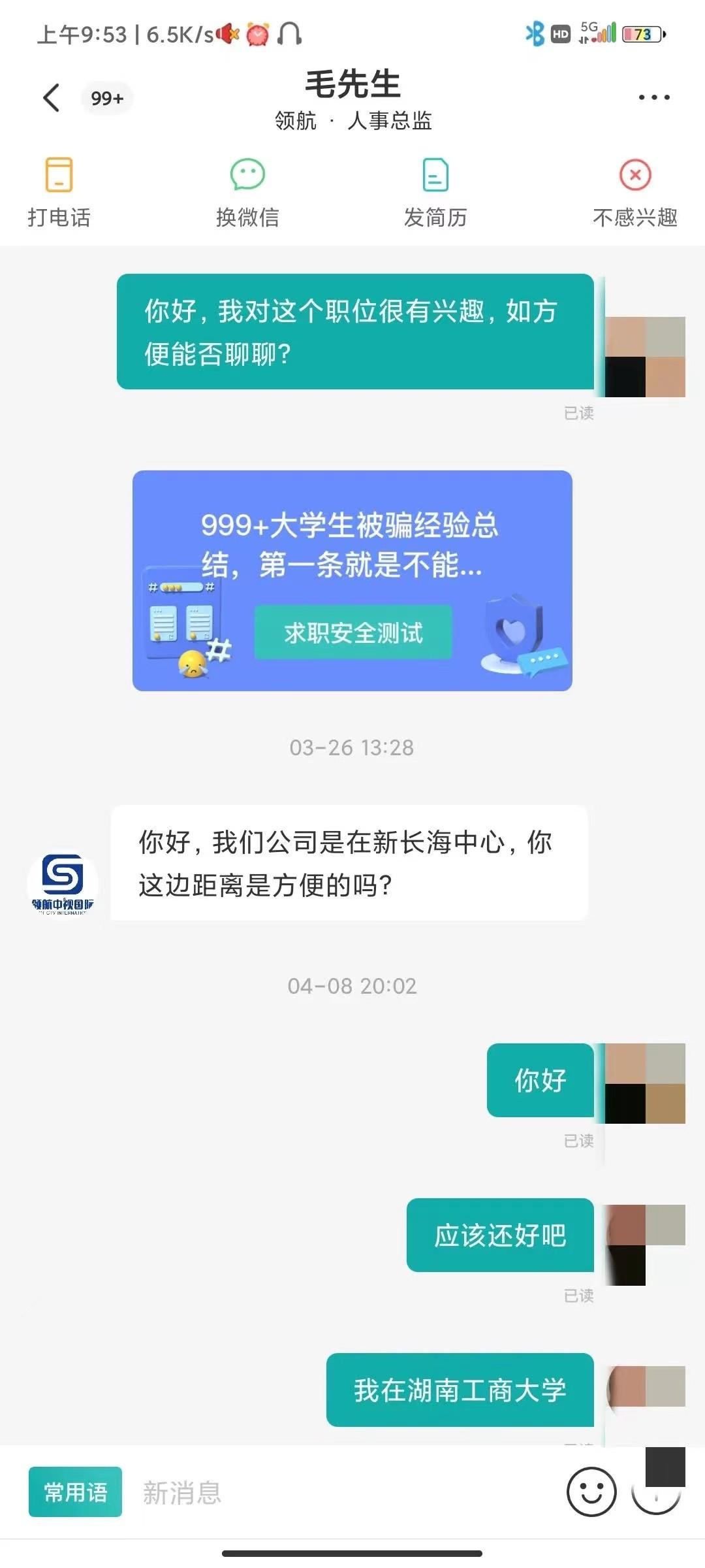 湖南的一名大学生黄同学,也是向大家一样从网上找工作。当看到一家大公司的客服岗位的时候,对该岗位产生了浓厚的兴趣。