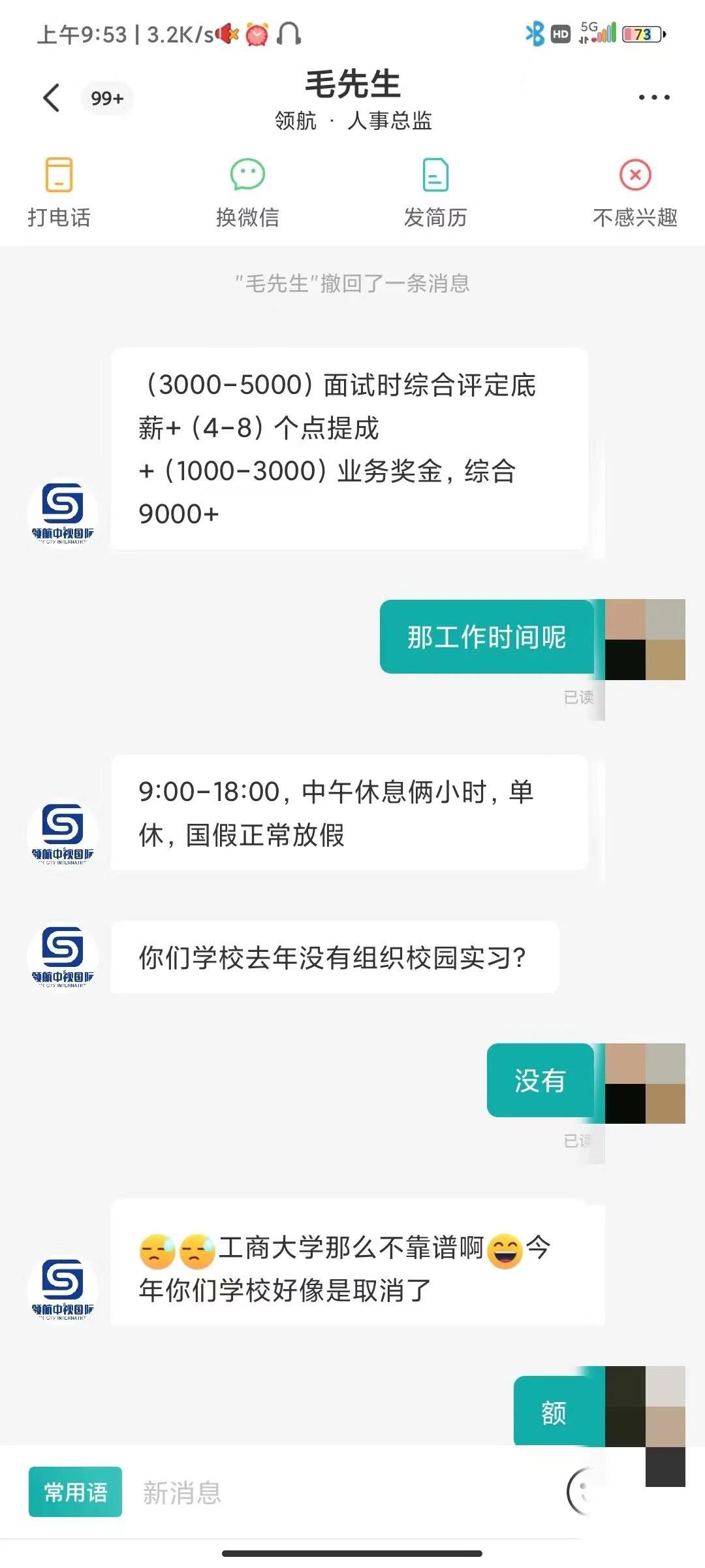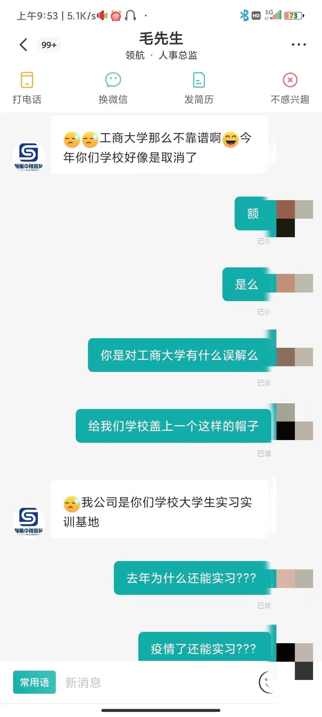 似乎看起来该公司的HR并看不起黄同学的学校,对学校学生的能力也是产生了很大的怀疑。