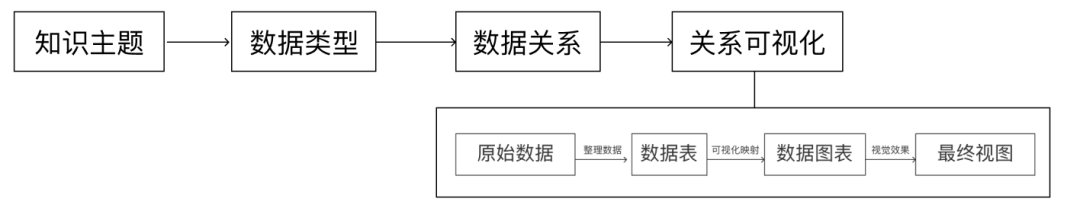 在实际工作中,设计侧的核心任务是“多关系图”的信息可视化。结合知识图谱的特征、技术原理和传统信息可视化方法,可以将知识图谱可视化的过程,归纳为“确定知识主题(主题层)-处理与分析数据(数据层)-构建数据三元组(关系层)-进行可视化映射(可视层)”四个步骤。