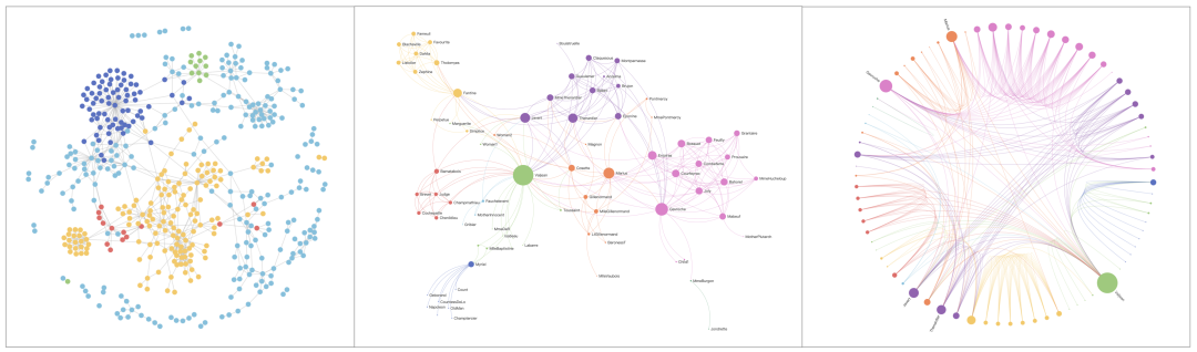 当关系构建好以后,简单的三元组是容易读取的,但众多三元组集成在一起,也会涉及到信息读取效率的问题,就需要将关系结构图形化,这一步骤也是传统信息可视化方法中的必然环节。