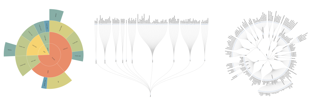 网状关系图包括:关系图、弦图、弧长链接图等;层次关系图包括:树图、旭日图、矩形树图等。详细的标准化图表,可以借助E-chart、Tableau Public、Smartbi等软件进行参考选择(如图9)。