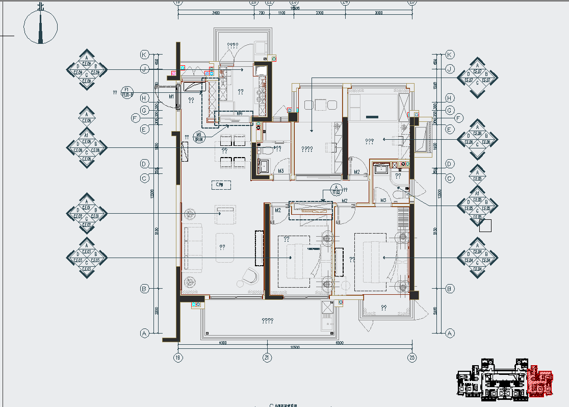 以下案例为这套素材主要是—现代风样板间户型-效果图+施工图