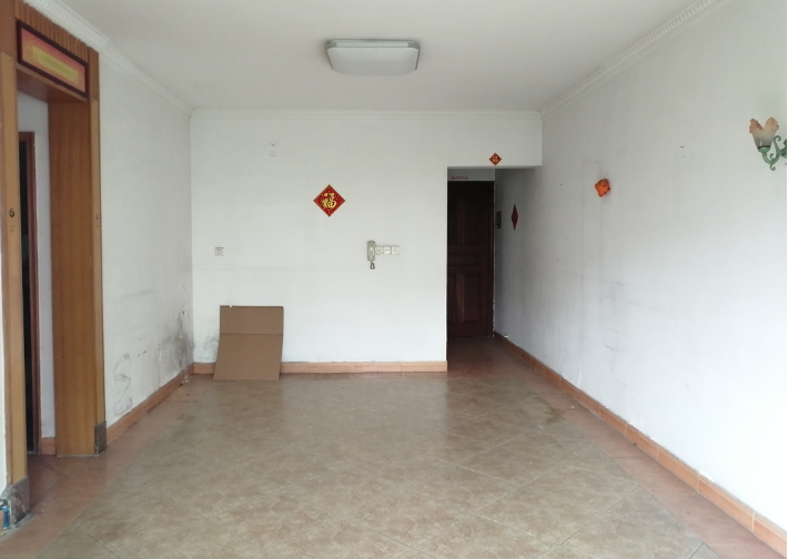 改造前,只是做了简单基础的装修,大白墙搭配地砖。墙面也留下了岁月的痕迹,有些地方也开始脱落了。隔墙加上推拉门的影响,空间略有些局促。