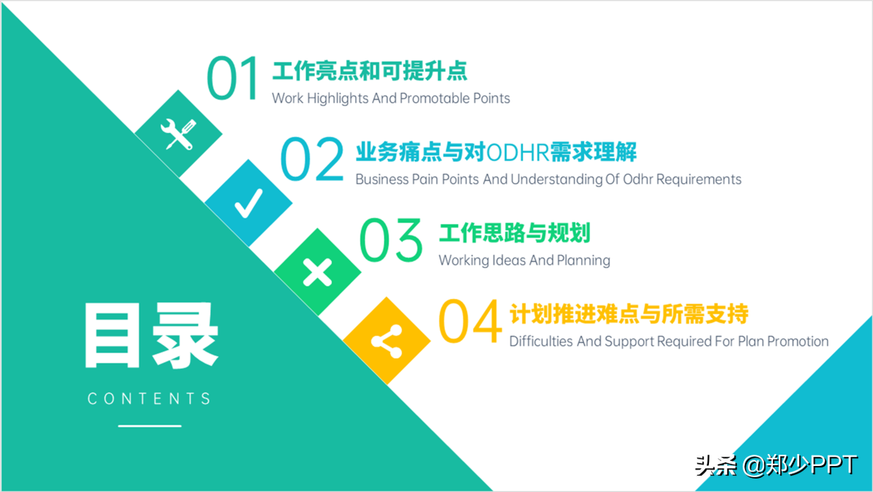 除此之外,对于目录页的设计,不能单纯地放上文字。