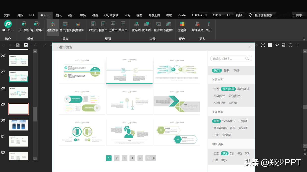 同理,在KOPPT插件中找一个简约的逻辑图表。