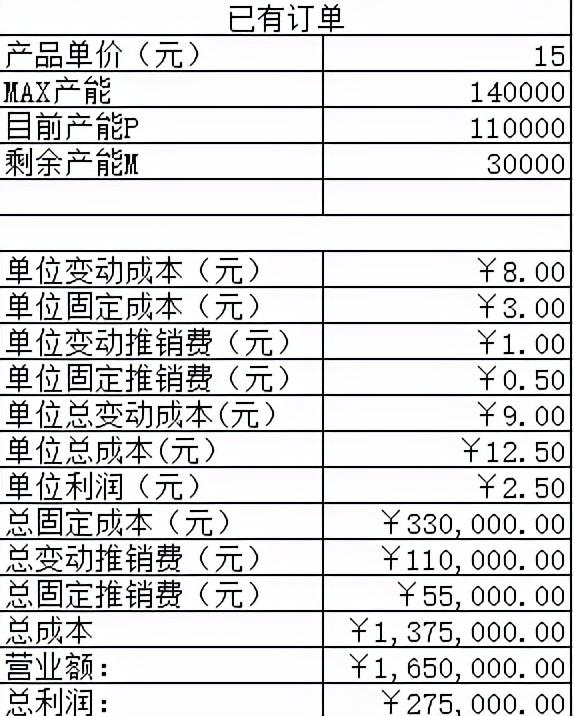 由于工厂已经接到客户订单,后面没有各种营销活动。所以新订单的两项推销费都为零。