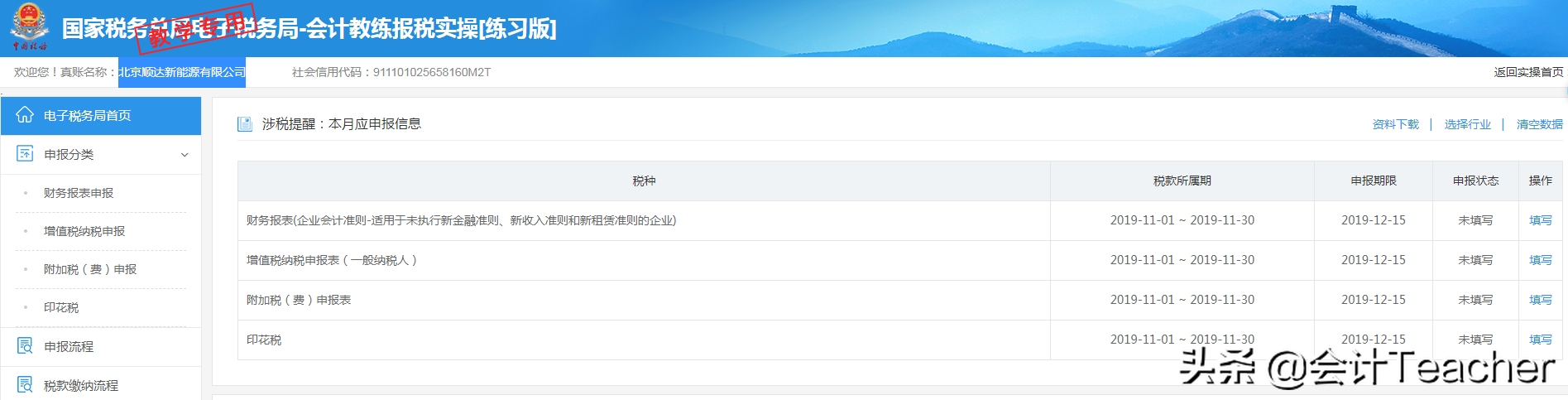 以上两个步骤完成后,就可以免费体验加油站纳税申报系统的实训练习了。