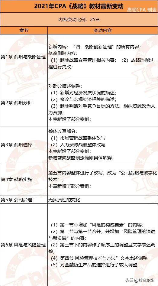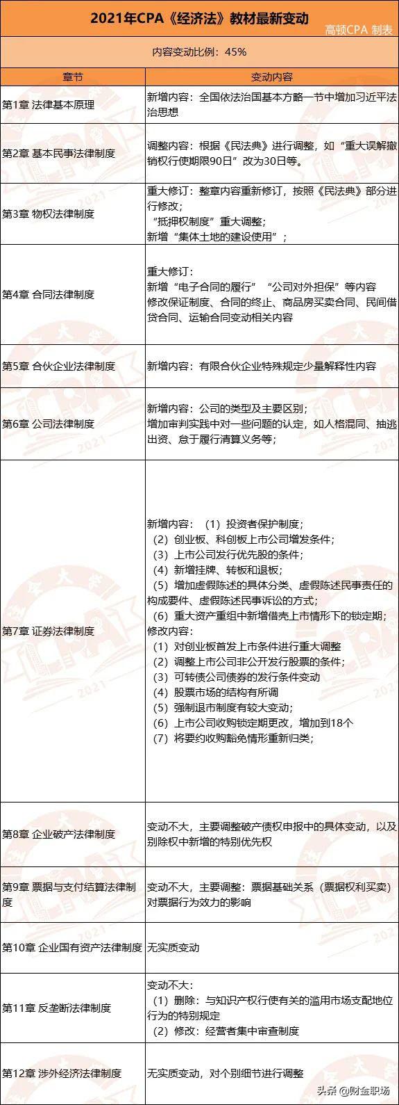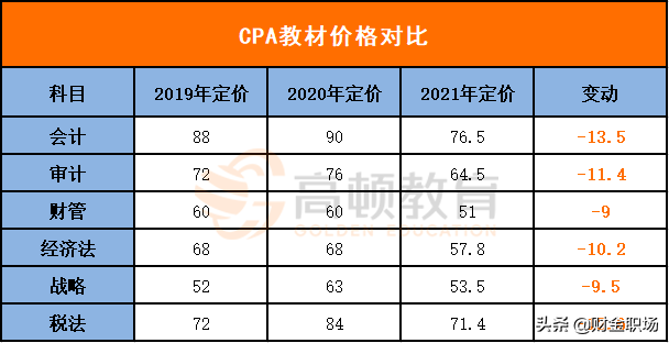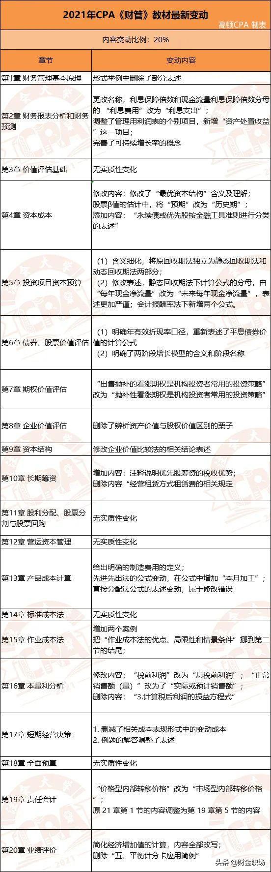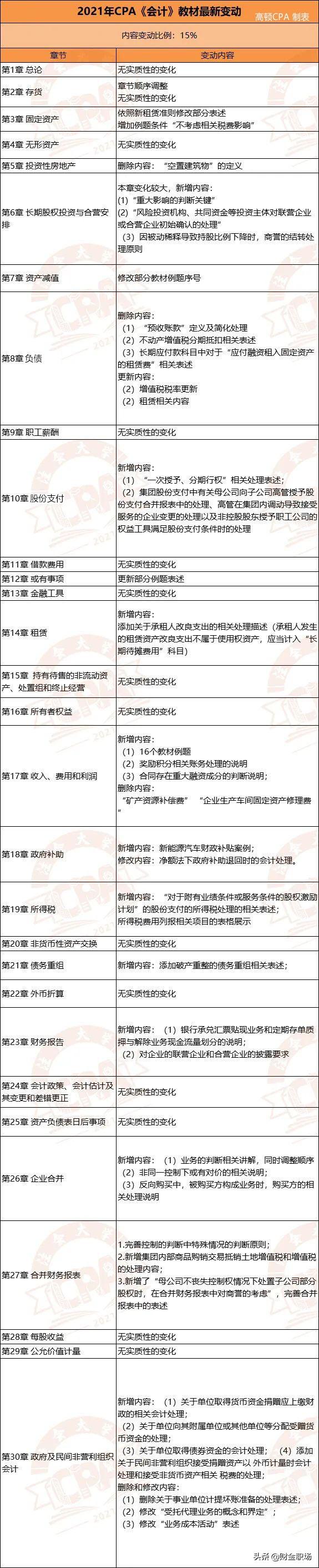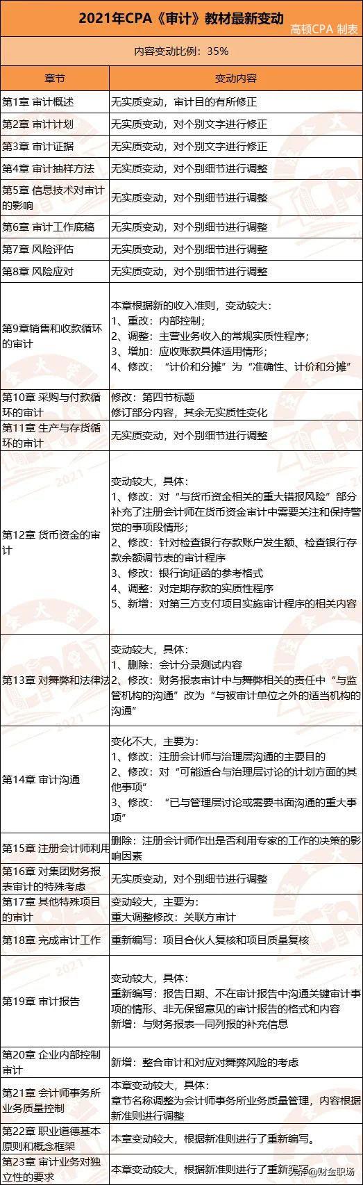 高顿CPA小编已将6科变动整理成下图,可供21届注会考生参考: