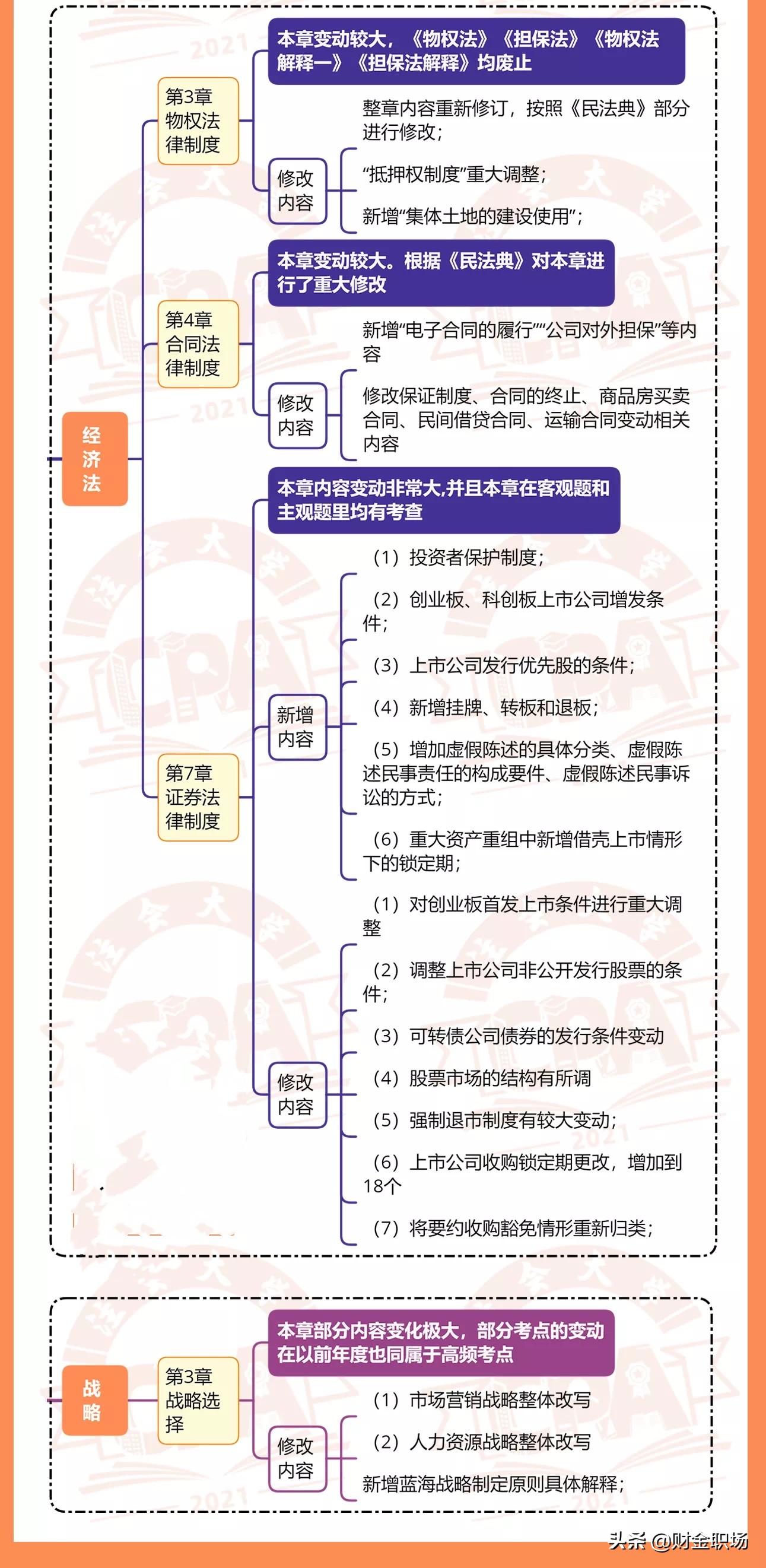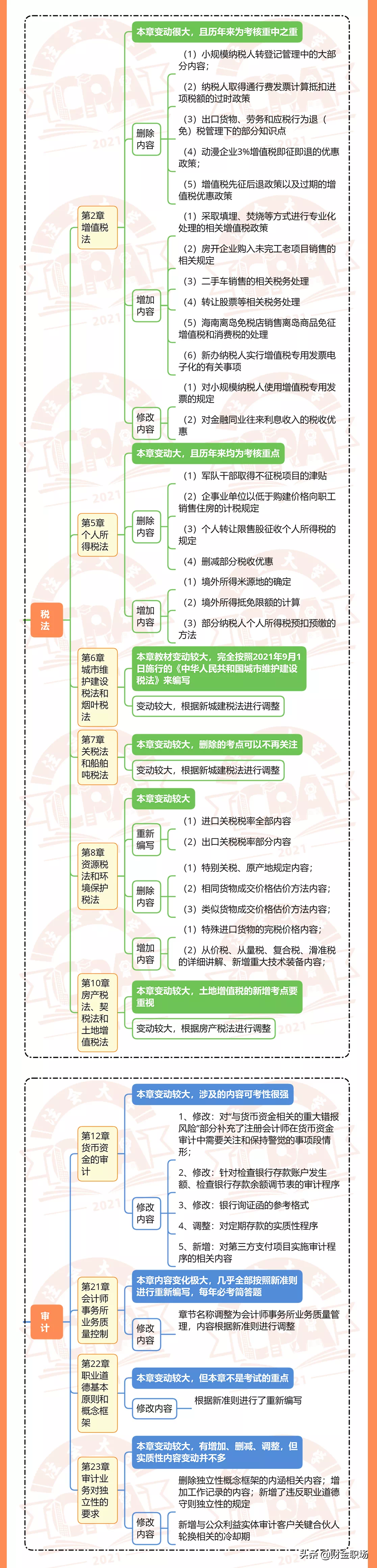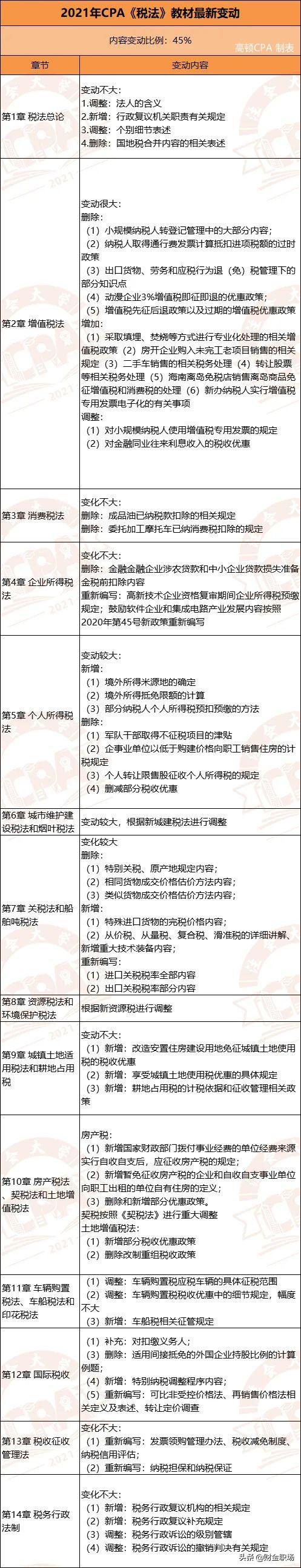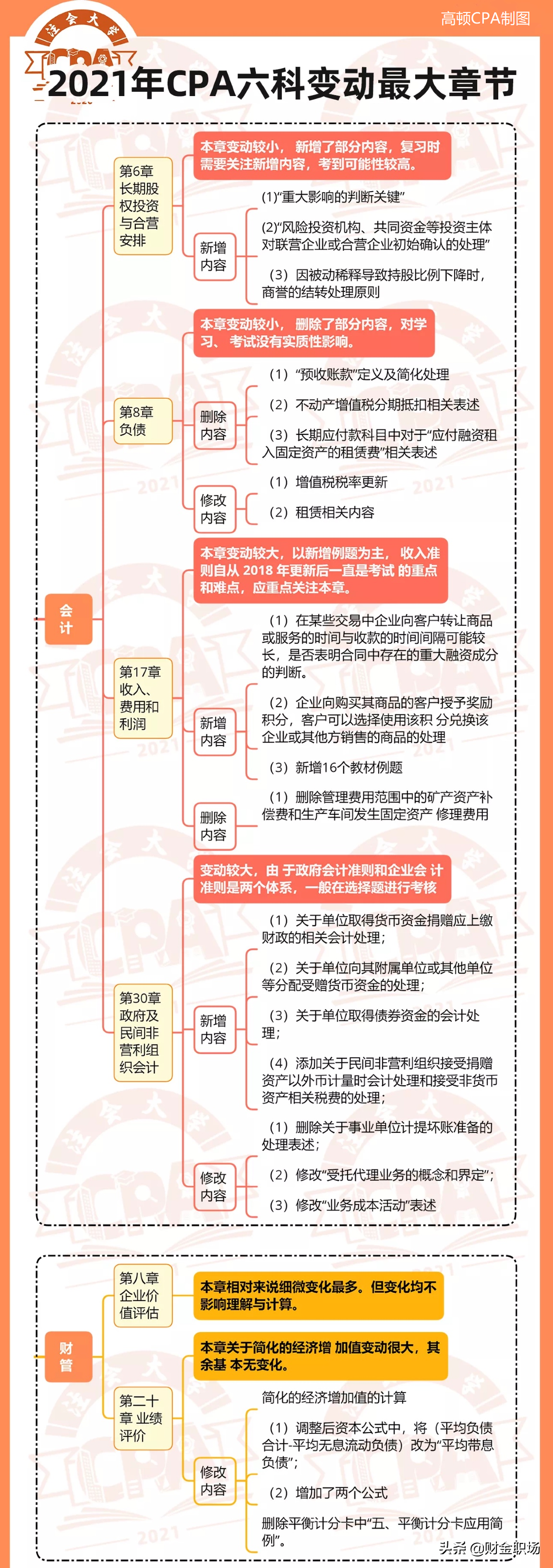 高顿CPA小编已将6科变动整理成下图,可供21届注会考生参考: