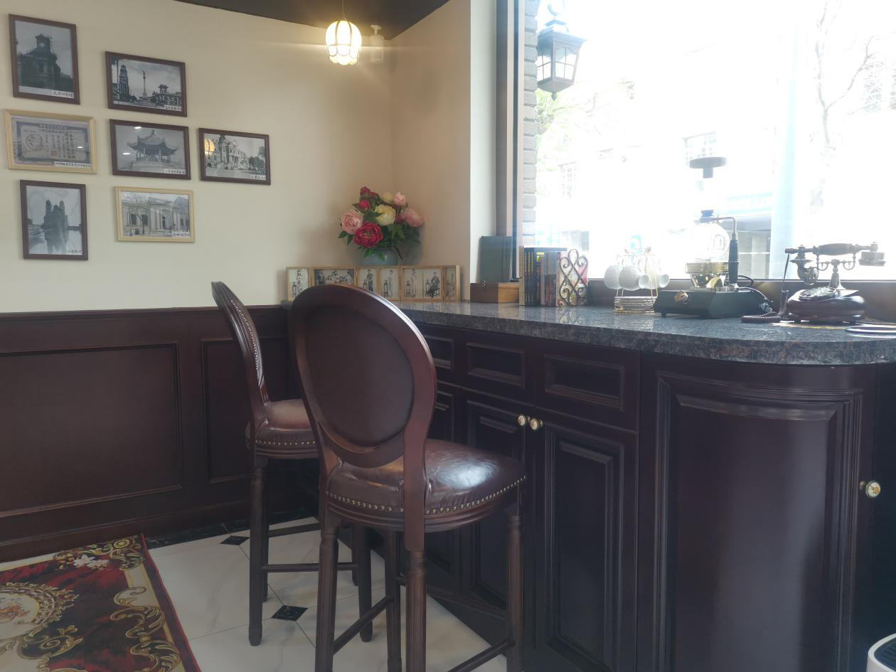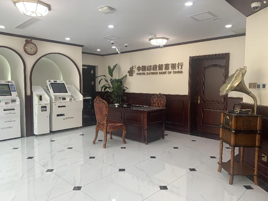 邮储银行民园支行网点改造是从去年11月份开始的,三四个月后,传统老旧的银行网点摇身一变成为国民风的“咖啡馆”和网红打卡地——这里有中式复古壁灯、电视里才能看到的转盘电话、黑胶唱片机......吧台上的复古相框和现代咖啡机呈现一种混搭上的美感,就连墙壁的装饰色都由传统的邮筒绿改成了复古褐......这里的一切讲述着一个个有历史厚重感的故事。