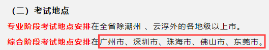 广东省2022注册会计师考试简章中考试地点相比去年有了一个明确的变化,综合阶段考试地点安排在广州市、深圳市、珠海市、佛山市、东莞市,共5个考区。