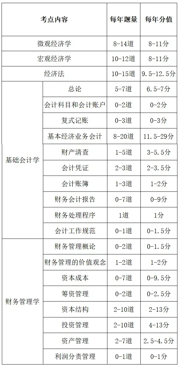 根据军队文职考试大纲要求和历年军队文职笔试情况,“会计学”科目考题内容及分值分布如下:
