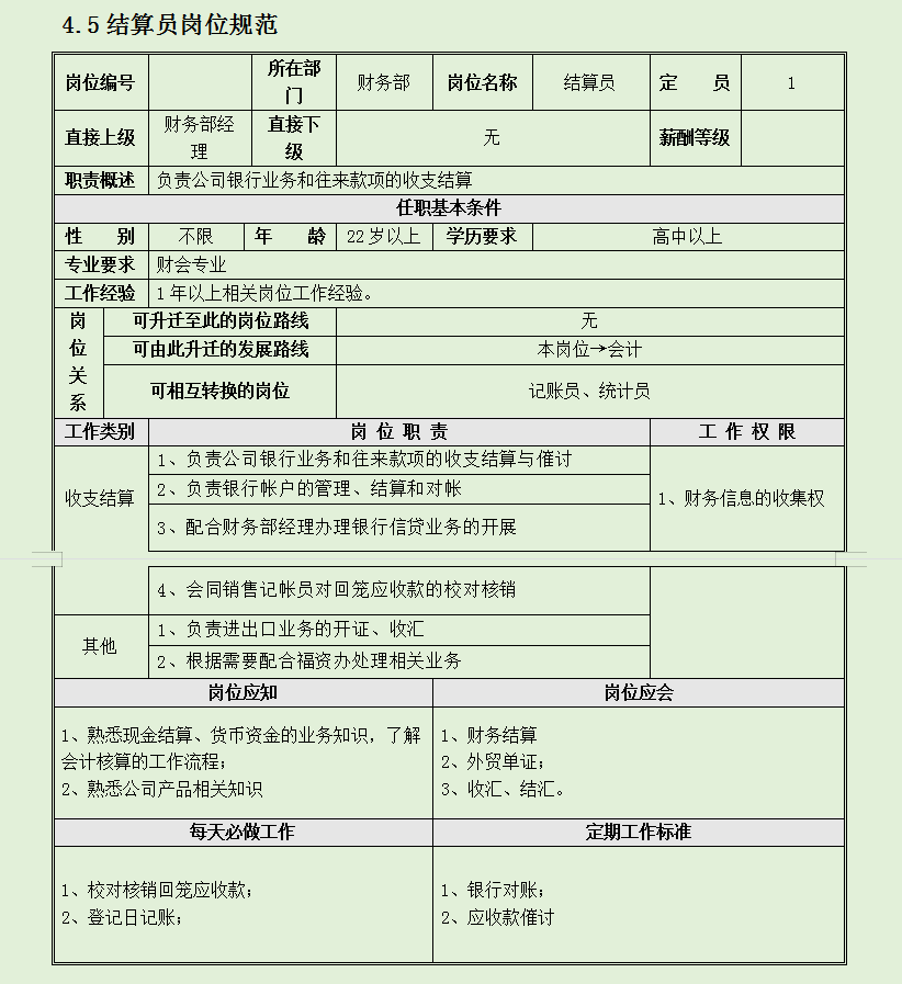 版权声明:我们致力于保护作者版权,注重分享,被刊用文章【结算员是会计岗位吗(财务部管理手册)】因无法核实真实出处,未能及时与作者取得联系,或有版权异议的,请联系管理员,我们会立即处理! 部分文章是来自自研大数据AI进行生成,内容摘自(百度百科,百度知道,头条百科,中国民法典,刑法,牛津词典,新华词典,汉语词典,国家院校,科普平台)等数据,内容仅供学习参考,不准确地方联系删除处理!;
