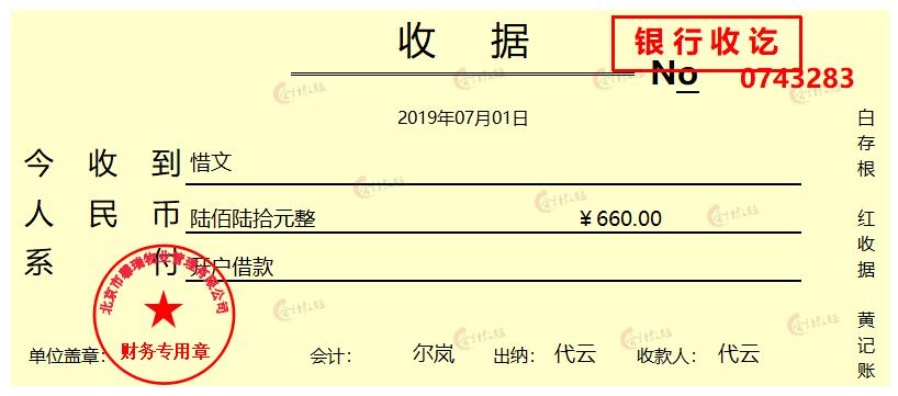 7月1日,出纳代云去农行北京燕莎东支行开立公司基本账户,发生开户费200元,网银操作费460元,合计660元,该款项以股东惜文垫付存入公司基本户同时划走该笔开户费及网银操作费。