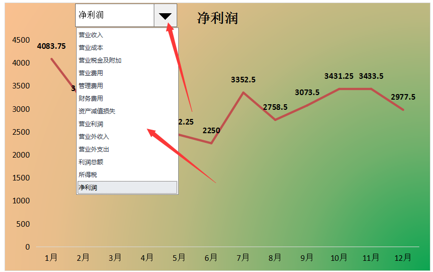 点击小三角下拉菜单,选取所需数据,选中数据后,图表数据会发生相应的改变。