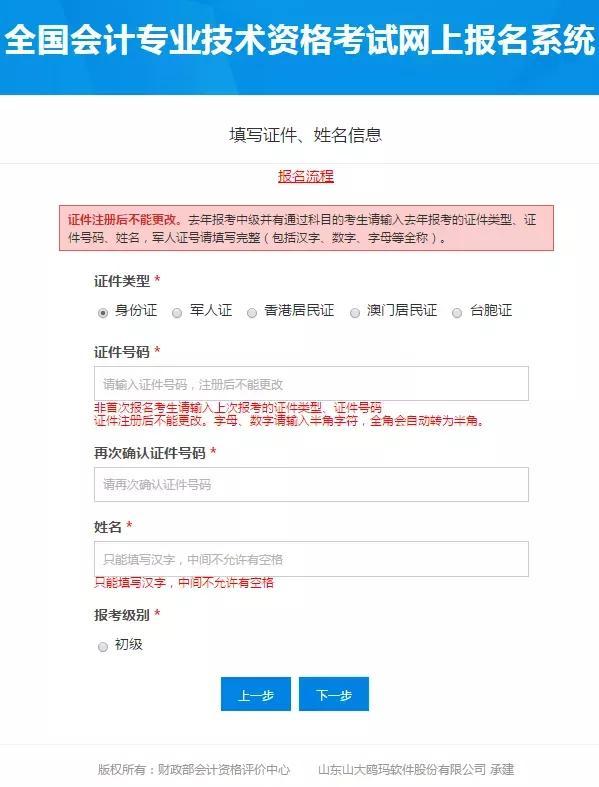 1.全国会计资格评价网已全新改版,比往年报名流程更加麻烦,在登录报名前需要完成实名认证,实名认证成功后,报考人员在规定时间内,登录“全国会计资格评价网”进行报名。