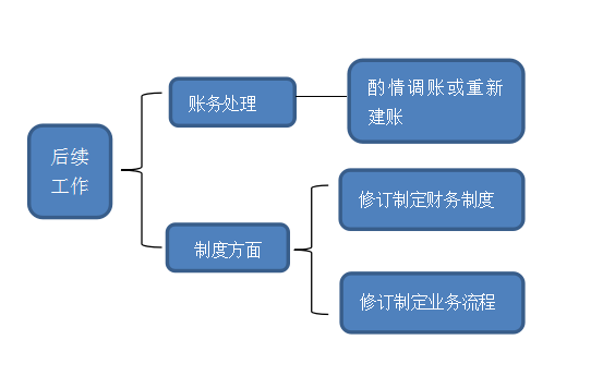 以小企业经营一段时间后,中途需要重新建账为例。若财产清查期初集中完成,根据清查结果进行期初建账,流程应该如下所示: