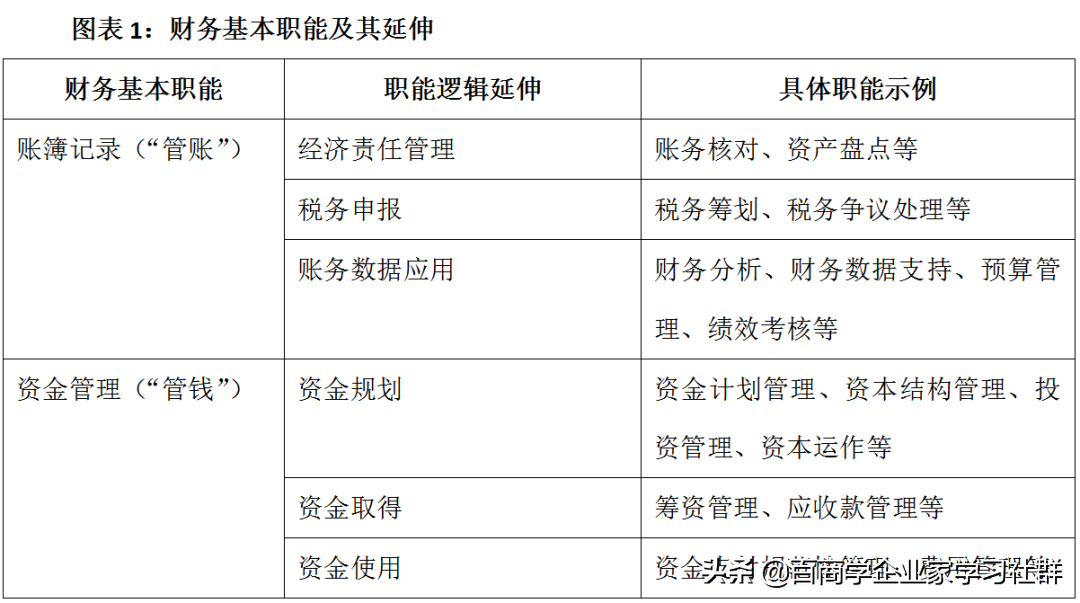 提高业务执行效率,即在不影响业务质量的前提下,降低对组织资源的消耗。提高决策质量,即为企业的决策质量提供有效的数据、专业分析技术及专业判断输入。提高风险管控水平,即及时识别、分析企业所面临的各类风险,并且进行有效应对,降低企业损失。上述几方面会相互衔接、相互影响,如决策质量低下即可能带来风险、降低经营效率。(二)财务部门基本职能分析