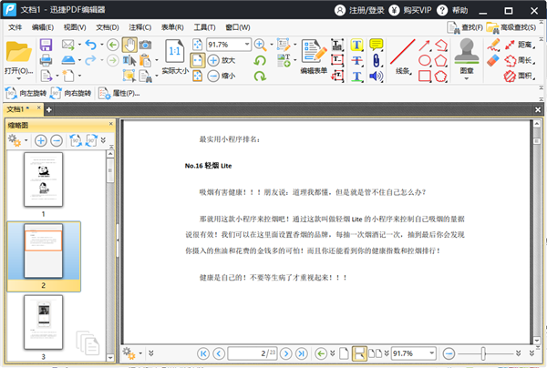 我们打开这个编辑器,然后用它打开我们要盖章的文件,我们在工具栏中可以看到这个软件有超多的功能,几乎所有Word的编辑功能在这里都有,可以随意对PDF文档进行编辑~