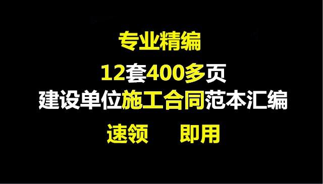 12套400多页的大型建设单位施工合同范本经过专业精编,把所涵盖到的细节问题全都列入合同,几乎包含了所有施工合同和劳务分包方面的合同,适合各大建筑公司在施工和劳务分包中使用,专业又实用,Word格式,随打随用,省时省事又省心。