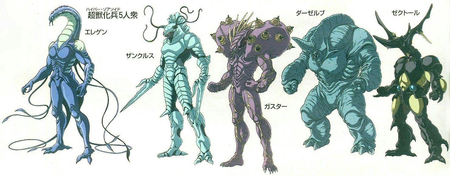 损种实验体的第一次登场,是阿卡菲尔的地球组织“克诺斯”总司令、兽神将利查特·吉欧带来的三名神秘兽化兵,总司令吉欧从外星人遗留下来的“遗迹基地”带到日本克诺斯分部一个损种实验体部队。