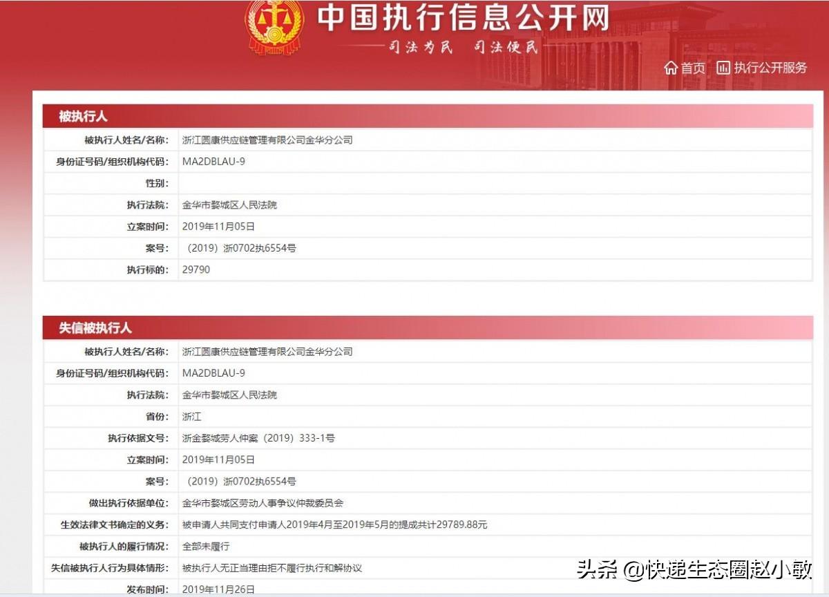 摘要|圆通的承诺达网站已经打不开,其公众号“承诺达”8月29日后没有再更新过,这意味着“曾经的梦”彻底破了。更令人遗憾的是“承诺达”的主体上海圆硕供应链企业有限公司旗下的浙江圆康供应链有限公司已被列为失信执行人;