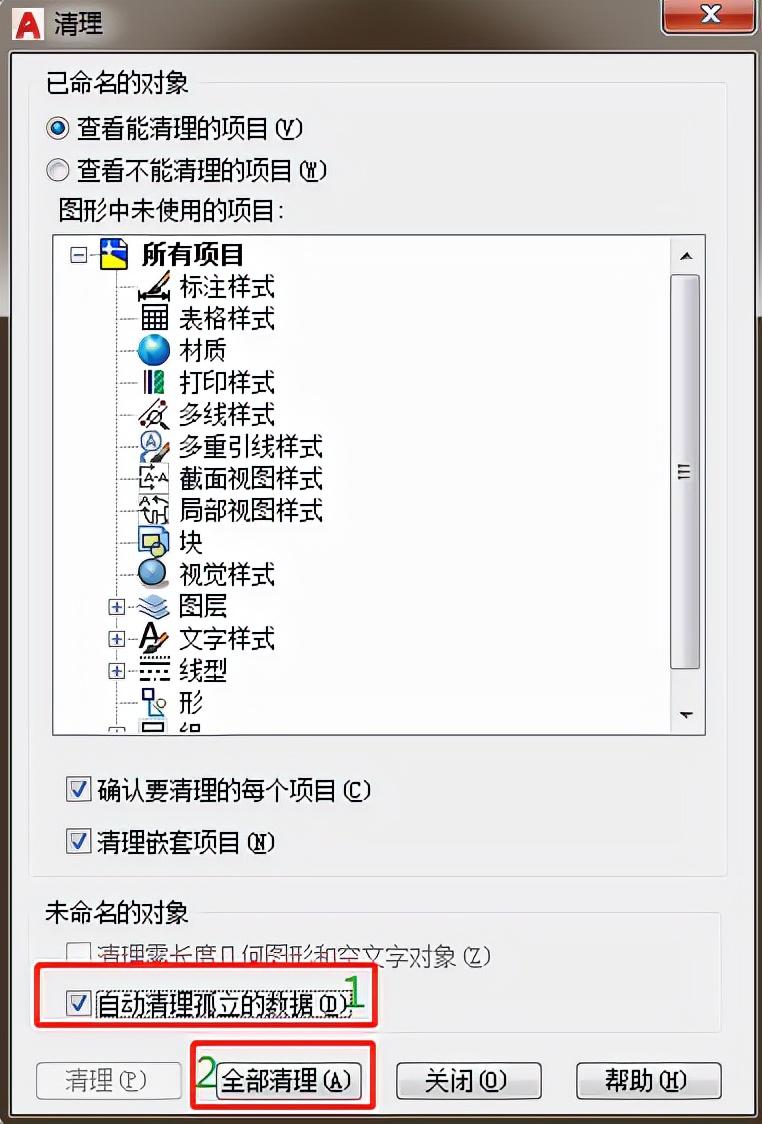 3、解决办法:在命令行输入PU,回车;在弹出来的【清理】对话框中勾选底部的“自动清理孤立的数据”按钮,然后单击“全部清理”即可。
