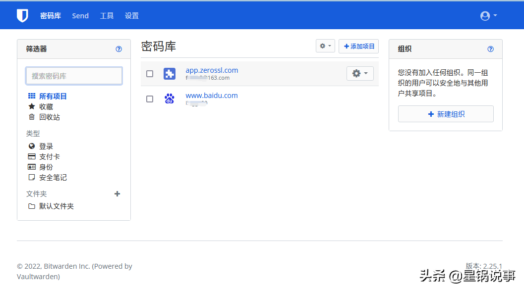 #安装Dockeryum -y install docker#启动dockersystemctl start docker#开机自启systemctl enable docker我们只要在服务器的 docker 里部署一个 bitwarden 的容器,就可以通过 IOS、安卓、Windows、浏览器,互相同步我们的所有密码。安全吗?数据都保存在自己的服务器上。