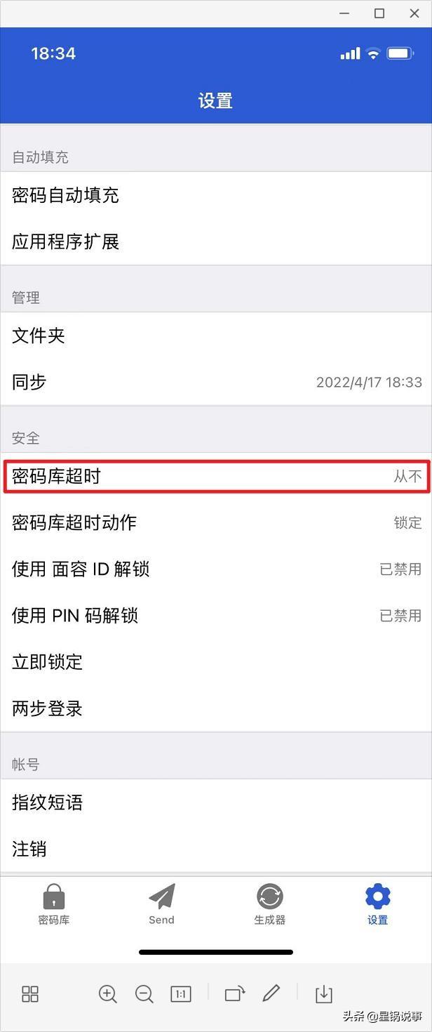 这里注意下设置密码库超时为永不,上面的浏览器和之后的安卓 app 同理