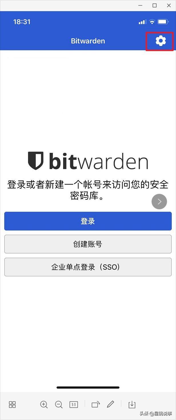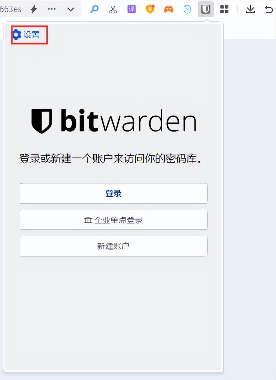 去各大浏览器应用商店搜索‘Bitwarden’安装,点击左上角的设置,添加自己的密码系统的域名