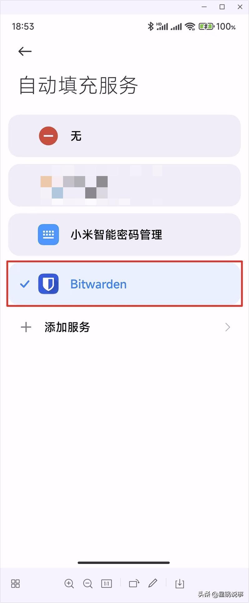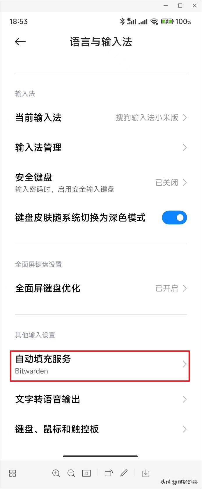 以小米手机为例,需要去谷歌商店,或者去 gayhub 下载 bitwarden 的 app,安卓端的自动填充设置,在设置里点击更多设置