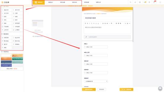 在这一步创建的表单,作为信息收集的入口,次级经销商可以随时填写表单内容发起项目申请。