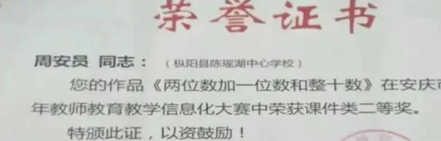那几年,周安员先后在铜陵市的多所小学任教,主要教授语文科目,期间他曾数次担任班主任职务,甚至还获得过“优秀班主任”的荣誉。
