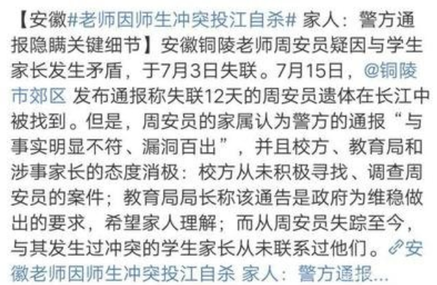 “铜陵教师自杀案”之所以会引起社会的广泛关注,主要有四个原因。