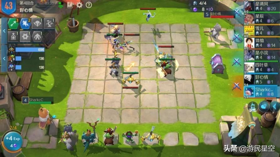在社交方面,相比寻常自走棋2V2对战的玩家交互玩法,《战歌竞技场》4V4“军团争霸”模式里,四名组队玩家共享血量,并且当你战胜对手后,还能分出棋子去支援队友,大大提升了组队“开黑”的交互性。而队伍无论是“杀狗”还是“友尽”,都使得联手下棋的乐趣增添了不少。