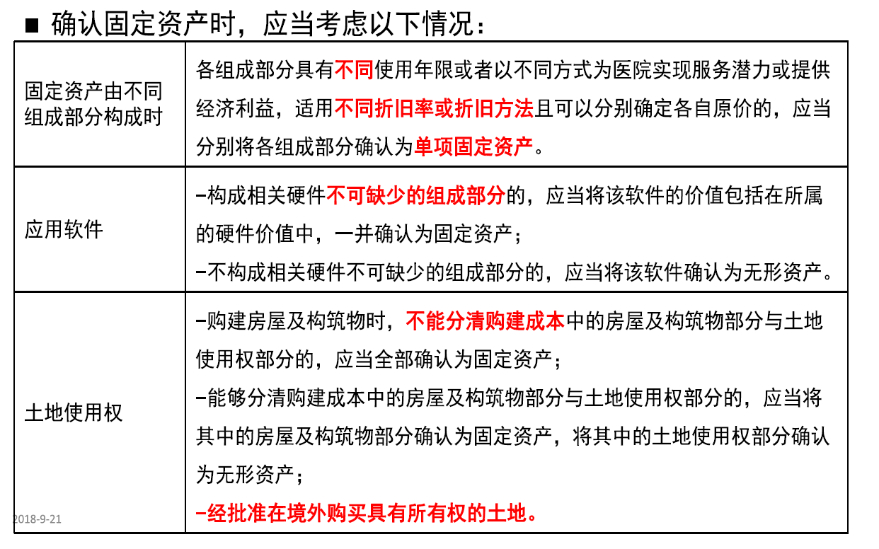 1、 固定资产由不同组成部分构成时,如果可以分别确定各自原价,可以分别入库。比如不同部分构成的像CT、核磁有大型主机设备还有像显示器之类的配件,如果能够在价格上区分的话,就分别入库,折旧年限也不同。
