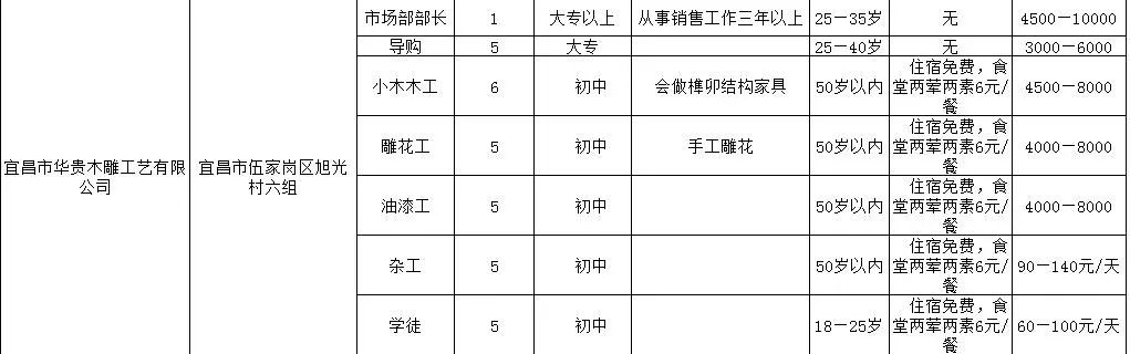 招聘岗位:小木木工、雕花工、油漆工、杂工、学徒。