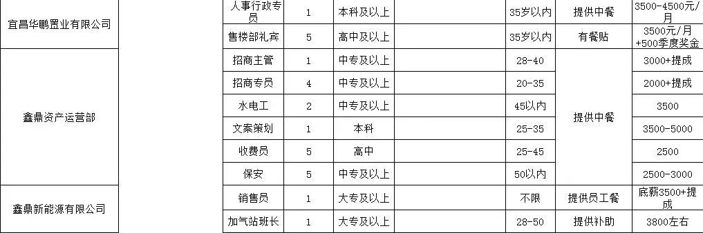 宜昌华鹏置业有限公司:人事行政专员、售楼部礼宾