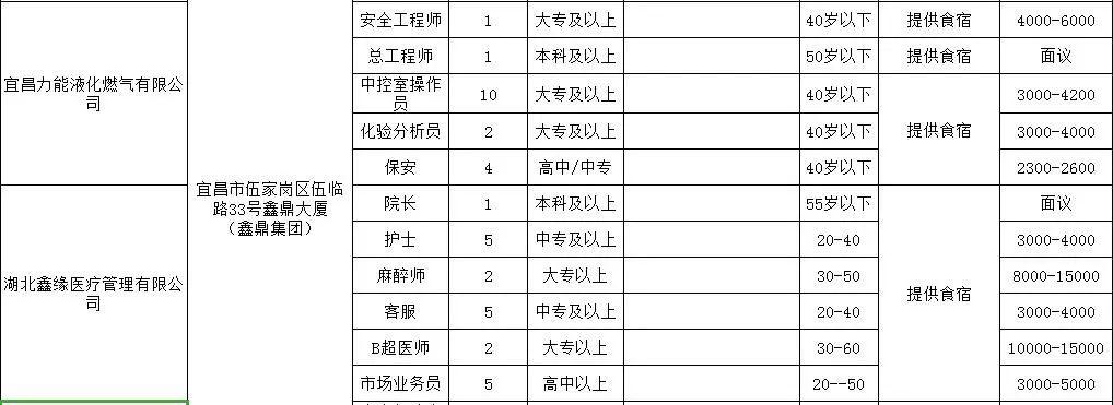 宜昌力能液化燃气有限公司:安全工程师、总工程师、中控室操作员、化验分析员、保安