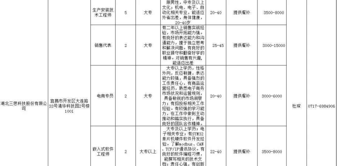 工资待遇:3000-13000元,提供单身宿舍和工作餐